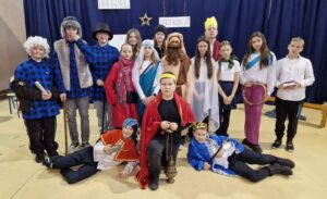 W magiczny, uroczysty czas świąt Bożego Narodzenia, kiedy wszyscy możemy na chwilę zwolnić i pochylić się nad swoim życiem, wprowadziły nas w piątek nietypowe jasełka, łączące dawne wydarzenia ze współczesnymi. Młodzi aktorzy zachwycili nas swoją dojrzałą, pełną wrażliwości interpretacją bożonarodzeniowej historii. Panie Aneta Sady, Jolanta Prachnio i Patrycja Celta wraz z uczniami przygotowały to świąteczne wydarzenie. Pozytywnych emocji, radosnych przeżyć dostarczył nam nasz szkolny zespół muzyczny pod kierownictwem p. Andrzeja Żydka, który zaprosił wszystkich do wspólnego kolędowania.
