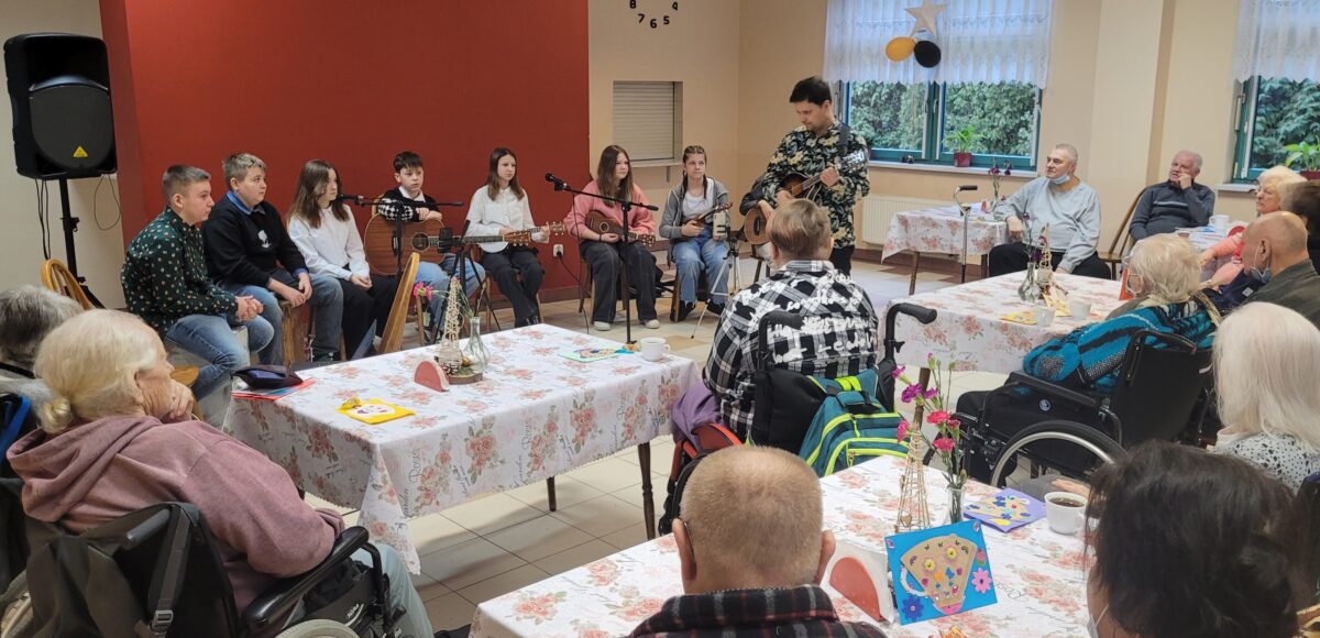Z okazji Dnia Babci i Dziadka szkolny zespół muzyczny wspierany przez Elżbietę Ela Garmulewicz oraz Andrzeja Żydka odwiedził Dom Opieki Senior w Orzegowie. Było to wspaniałe międzypokoleniowe spotkanie, które obfitowało w wiele wzruszeń oraz ciepłych emocji. Młodzi muzycy zagrali zróżnicowany repertuar, a Pani Ela, brawurowo zaśpiewała dwa utwory. Jednym z elementów koncertu było wspólne śpiewanie piosenek ludowych. Jesteśmy przekonani, że to spotkanie nie było ostatnie!