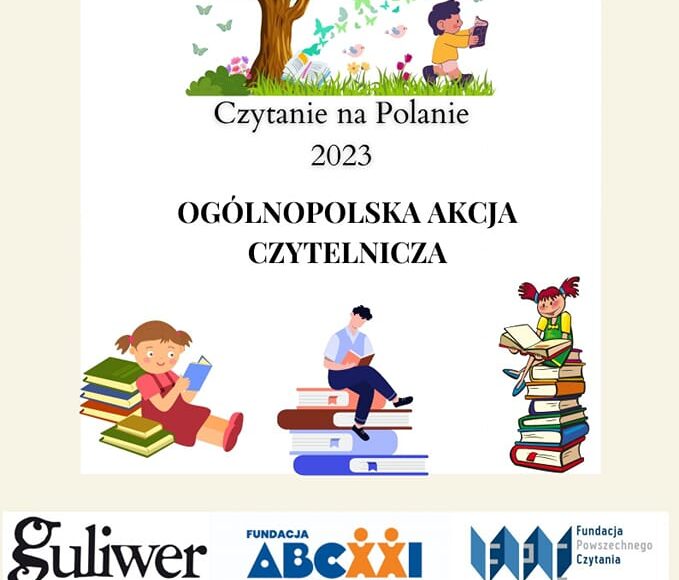 Nasza placówka bierze udział w akcji „CZYTANIE NA POLANIE” Akcja jest realizowana w ramach kampanii społecznej „Cała Polska Czyta Dzieciom” i polega na zorganizowaniu imprezy czytelniczej w dniach między 1 a 20 czerwca 2023 roku, a jej realizacja odbywa się na świeżym powietrzu.